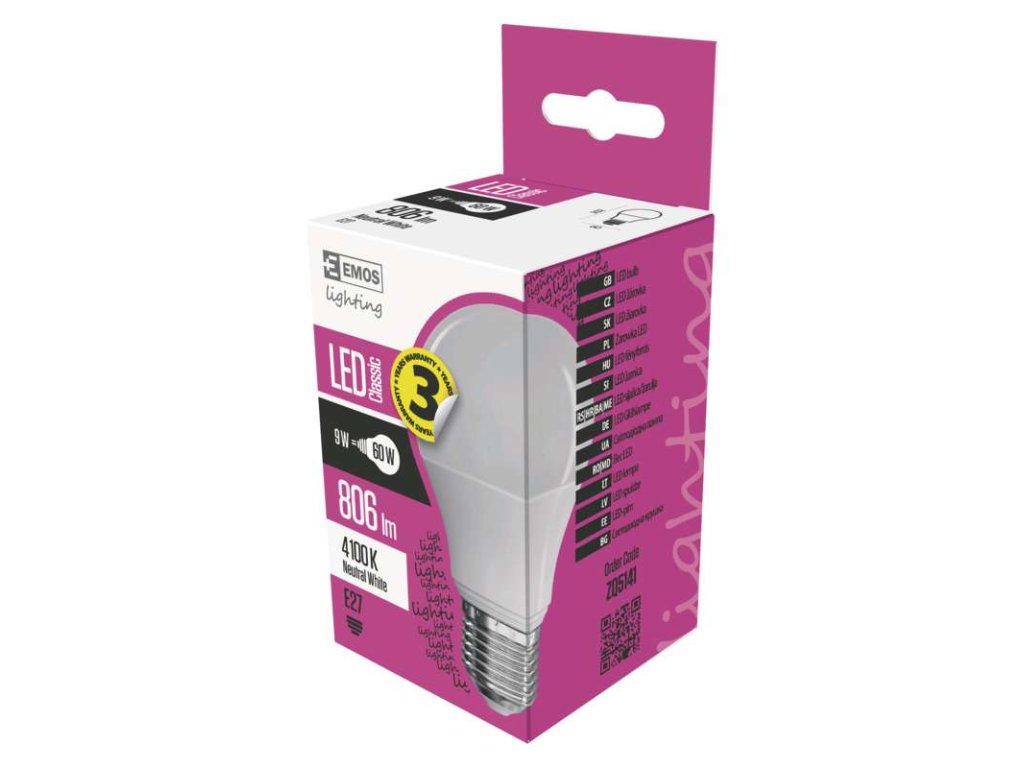 LED žiarovka je náhradou za 60 W žiarovku, svetelná účinnosť 90 lm/W, svetelný tok/svietivosť 806 lm, index podania farieb (CRI) 80, napätie 230 V~/50 Hz, spínací cyklus 25 000, výkon 9 W, čas nábehu 0,1 s, uhol vyžarovania 300°, životnosť 30 000 hodín. Zbavte sa starých, neekologických žiaroviek a začnite svietiť lepšie a efektívnejšie.Dodatočné parametre