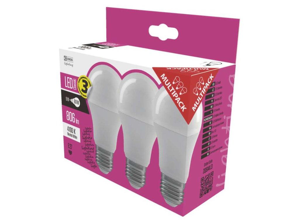 LED žiarovka je náhradou za 60 W žiarovku, svetelná účinnosť 90 lm/W, svetelný tok/svietivosť 806 lm, index podania farieb (CRI) 80, napätie 230 V~/50 Hz, spínací cyklus 25 000, výkon 9 W, čas nábehu 0,1 s, uhol vyžarovania 300°, životnosť 30 000 hodín. Zbavte sa starých, neekologických žiaroviek a začnite svietiť lepšie a efektívnejšie.Dodatočné parametre