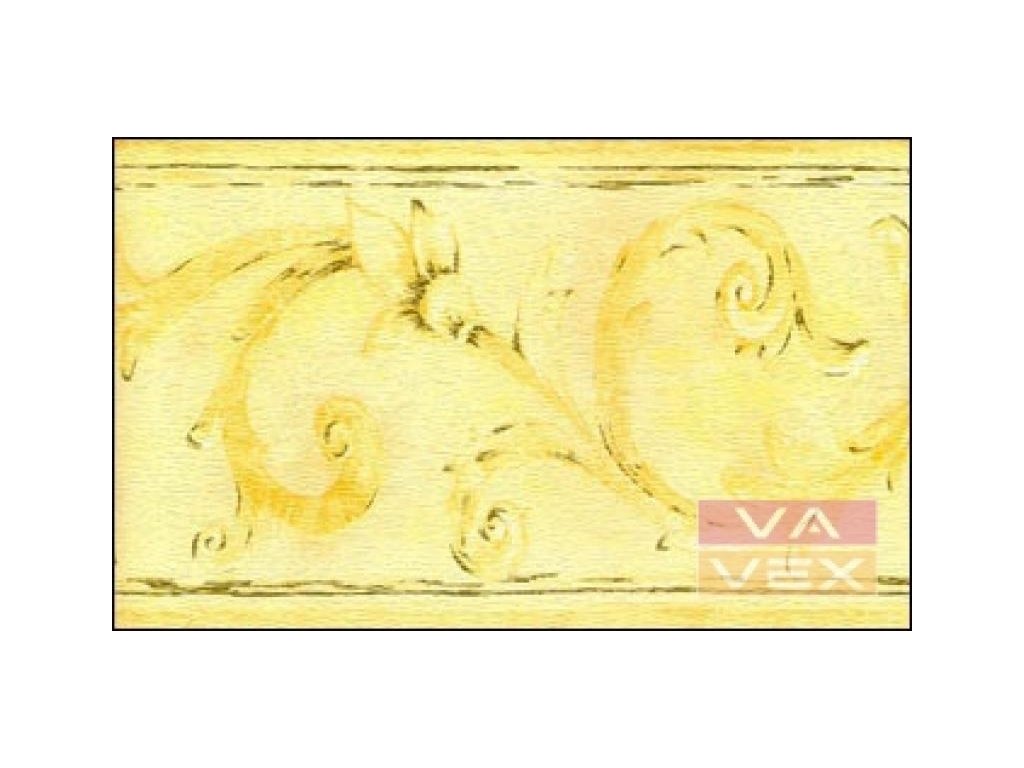 Papierový okraj so žltým motívom, rozmer 5x0,135 m. Okraje sú skvelým doplnkom jednoduchého prechodu medzi dvoma typmi tapiet, slúžia tiež na zvýraznenie dĺžky alebo šírky miestnosti. Obruby svojou jednoduchosťou a jemným vzorom podčiarkujú celkový charakter interiéru.Dodatočné parametre