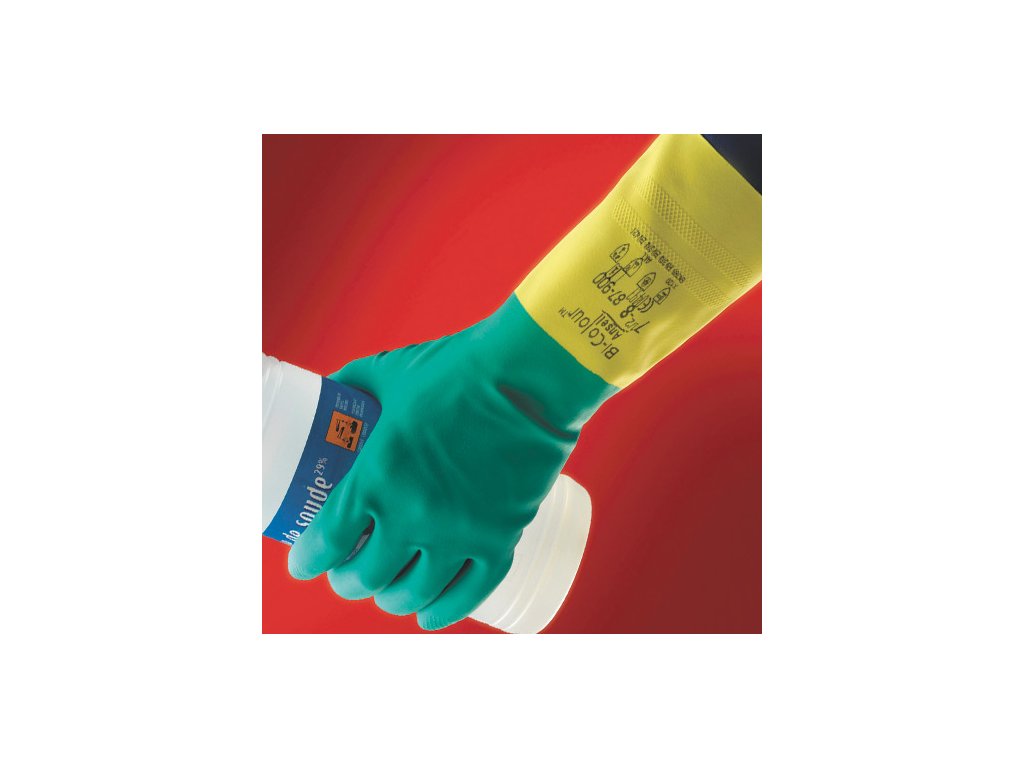 Rukavice odolné kyselinám BI-COLOUR