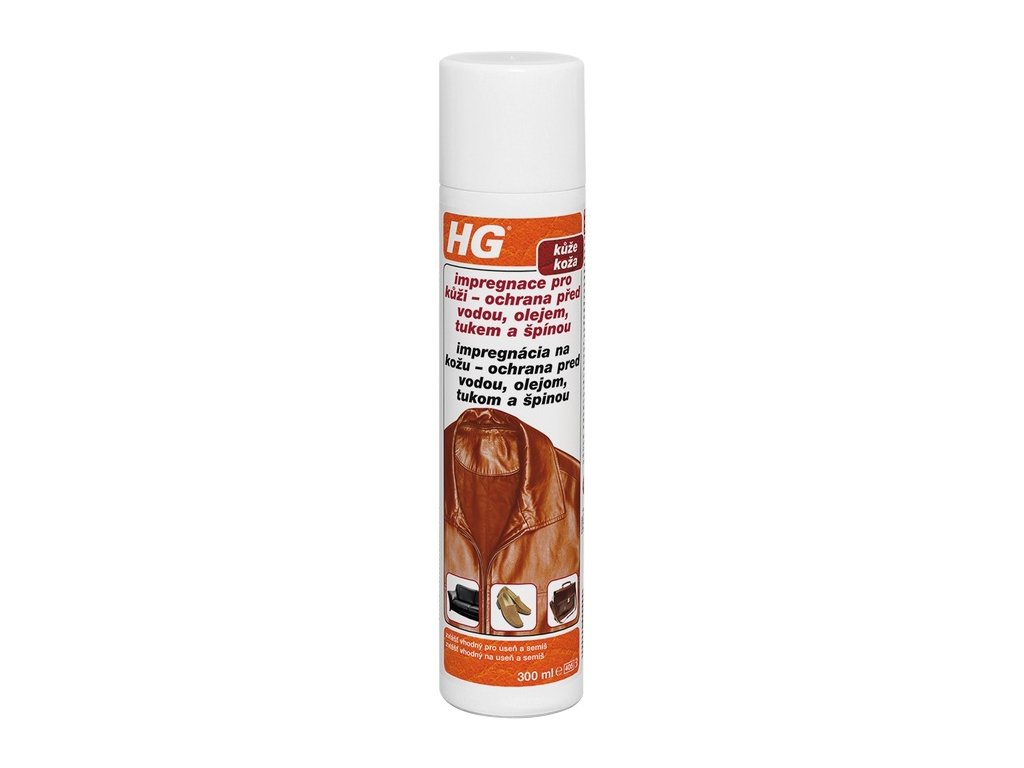 Impregnácia HG na ochranu kože pred vodou, olejom, mastnotou a nečistotami je špeciálne vyvinutá na ochranu a údržbu všetkých druhov kože, ale najmä na starostlivosť o otvorené kože, ako sú semiš, nubuk a anilín. Prípravok neviditeľne chráni pokožku pred znečistením olejom, kávou, čajom a vínom a prirodzene aj pred poškodením vodou. Vďaka silnému ochrannému účinku výrobku možno kávu, čaj, oleje, mastnotu alebo víno ľahko odstrániť pomocou absorpčnej utierky. Údržba kože je s týmto výrobkom veľmi jednoduchá. Návod na použitie: Pokožka, ktorá sa má ošetriť, musí byť suchá a čistá. Prípravok nanášajte na pokožku zo vzdialenosti približne 20 cm rovnomernými pruhmi. Po približne 1 hodine sušenia je pokožka dokonale ošetrená a chránená.Dodatočné parametre