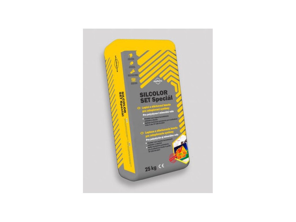 CHEMA SET Special je určený na lepenie všetkých typov izolačných systémov a ako vrchná armovacia stierka pre izolačné systémy. Spĺňa požiadavky ETAG 004. Tento výrobok je súčasťou izolačných systémov SILCOLOR THERM, SILCOLOR THERM Mineral, ECOLOR THERM a ECOLOR THERM Mineral.Tmel je odolný a je určený na použitie v interiéri aj exteriéri. Môže sa použiť aj na lepenie obkladov a dlažieb na hydroizolačné hmoty zo sortimentu STACHEMA CZ. Popis produktu Lepiaca malta CHEMA SET Special (polystyrén, minerálna vlna) a ako vrchná výstužná stierka pre zatepľovacie systémy. Tmel je odolný a je určený na použitie v interiéri aj exteriéri. Lepiaca malta je balená v 25-kilogramovom vreci. - Spotreba stierky je 4 kg/m2 pri stierkovaní, 3-5 kg/m2 pri lepení - Vhodná ako lepiaca aj stierkovacia hmota na použitie v interiéri aj exteriéri Príprava podkladu Podklad musí byť nosný, čistý, bez prachu a nečistôt. Veľké trhliny v podklade sa musia vopred opraviť, všetky dilatačné škáry musia byť funkčné. Penetrujte podklad podľa pokynov výrobcu systému ETICS. Penetrácia musí vždy dôkladne vyschnúť, najmenej 12 hodín - v závislosti od teploty okolia. Penetráciu možno použiť PENECO NANO pozri príslušenstvo. Príprava zmesi 25 kg suchej zmesi nasypte do 4,5-5 l vody. Zmes miešajte pomalým miešadlom pri 200-400 otáčkach za minútu aspoň 2 minúty, aby sa vytvorila homogénna hmota. Po premiešaní nechajte zmes 5 minút odpočívať a znova ju jemne premiešajte. Zmes je spracovateľná minimálne 2 hodiny pri teplote 20 °C. Zvýšený obsah vody vedie k zhoršeniu zaručených vlastností zmesi.Dodatočné parametre