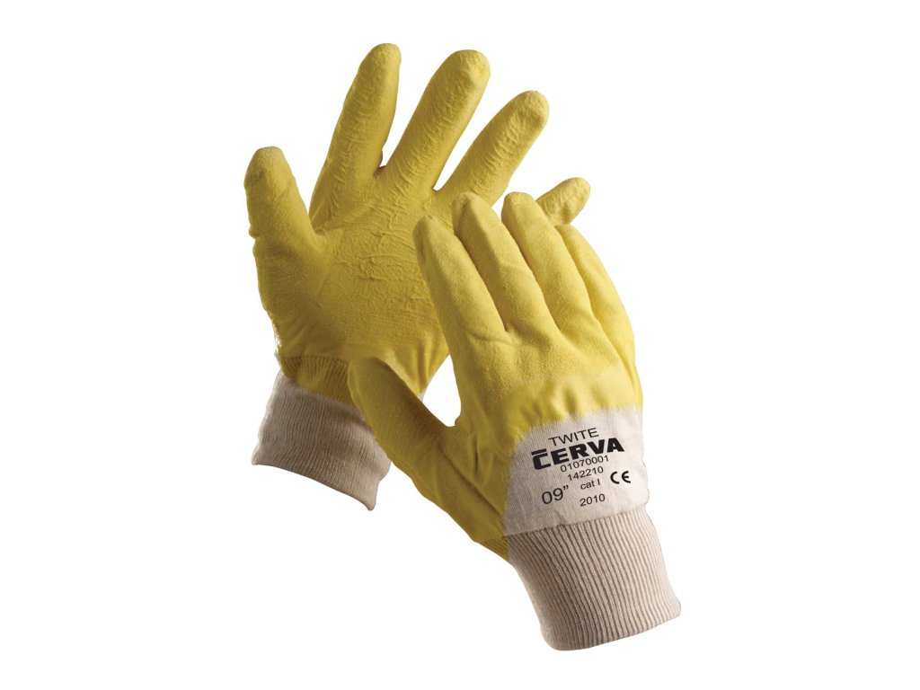 Rukavice z bavlny, čiastočne namočené v prírodnom latexe, s protišmykovou úpravou v dlani a na prstoch.Dodatočné parametre