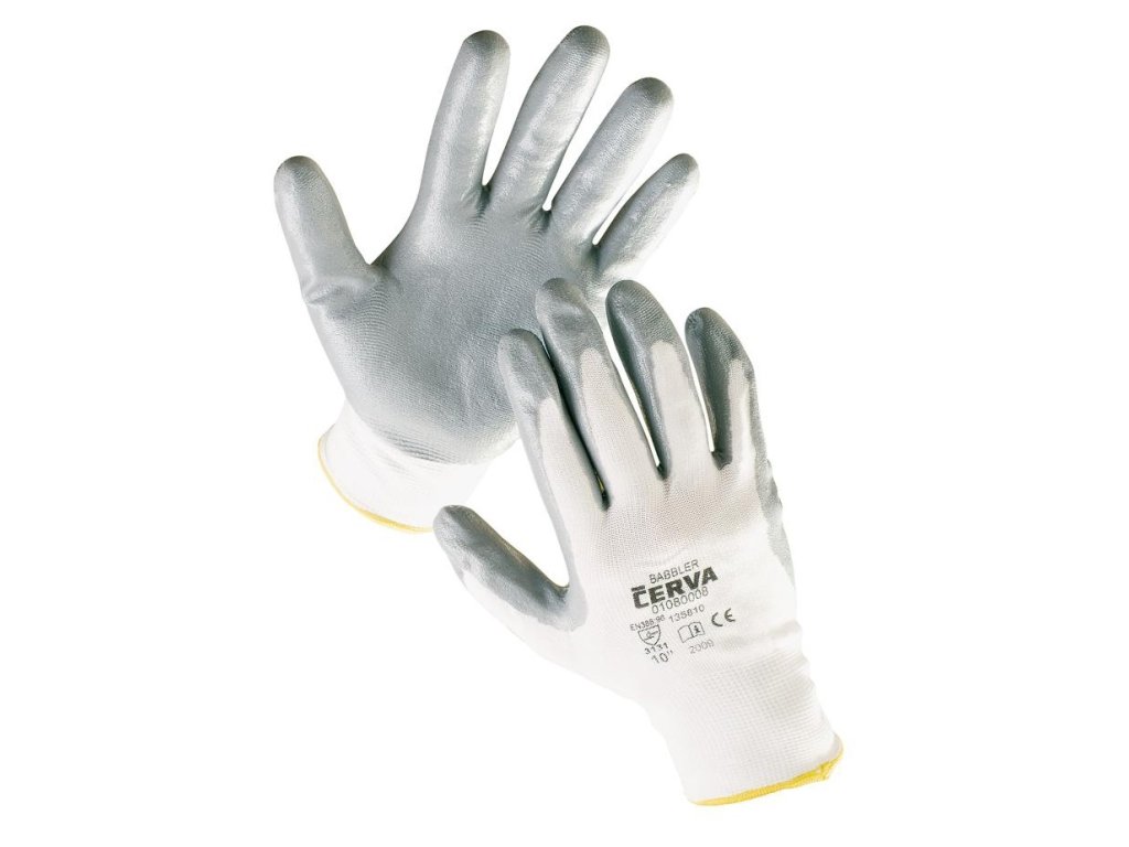 Pletené bezšvové nylonové rukavice s vrstvou mikroporézneho nitrilu v dlani a na prstoch a elastickým úpletom.- Rukavice sú vhodné najmä na práce, pri ktorých sa vyžaduje cit v rukách. Krásne vám obopnú ruku a vy si ich ohmatáte.
