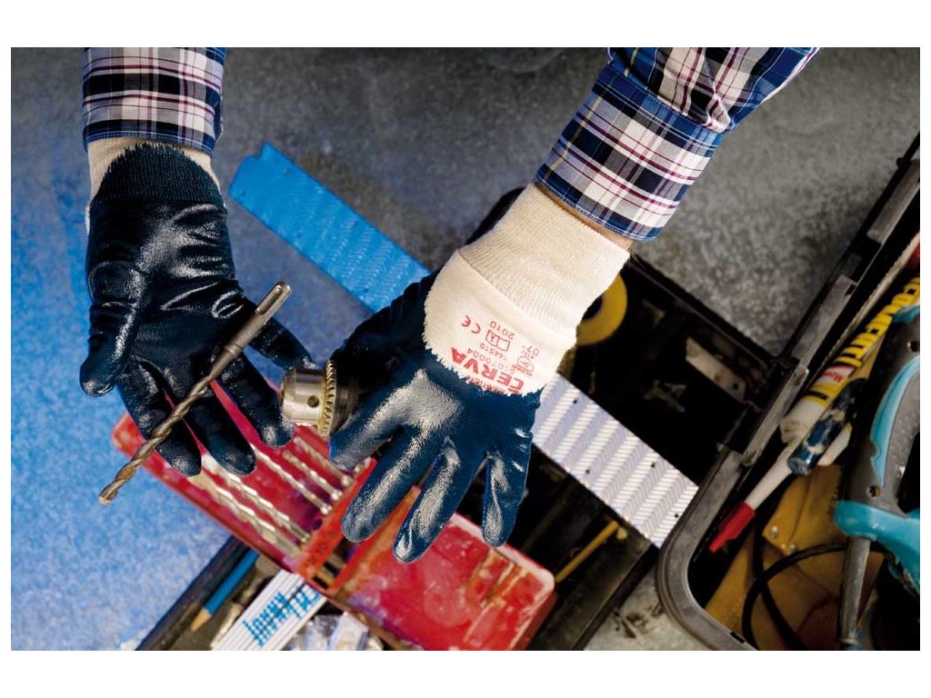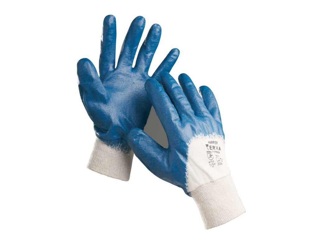 Polomáčacie rukavice HARRIER z bavlneného úpletu, polomáčané nitrilom, s elastickou nášivkou. Vo veľkostiach 9", 8", 7".- EN 388 - Ochranné rukavice proti mechanickým rizikám