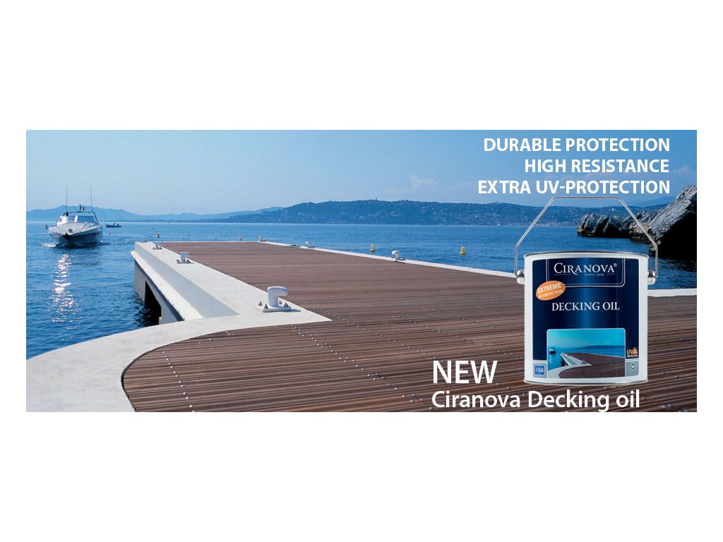 Decking oil je impregnačný olej na ochranu a údržbu vonkajších drevených povrchov. Palubný olej obsahuje UV filter, ktorý spomaľuje zmenu farby dreva. Palubný olej poskytuje drevu ochranu pred dažďom a poveternostnými vplyvmi. Palubný olej je vhodný na všetky drevené povrchy, vonkajší nábytok a terasy. Pravidelné používanie oleja na palubovky zvyšuje odolnosť dreveného povrchu.Príprava