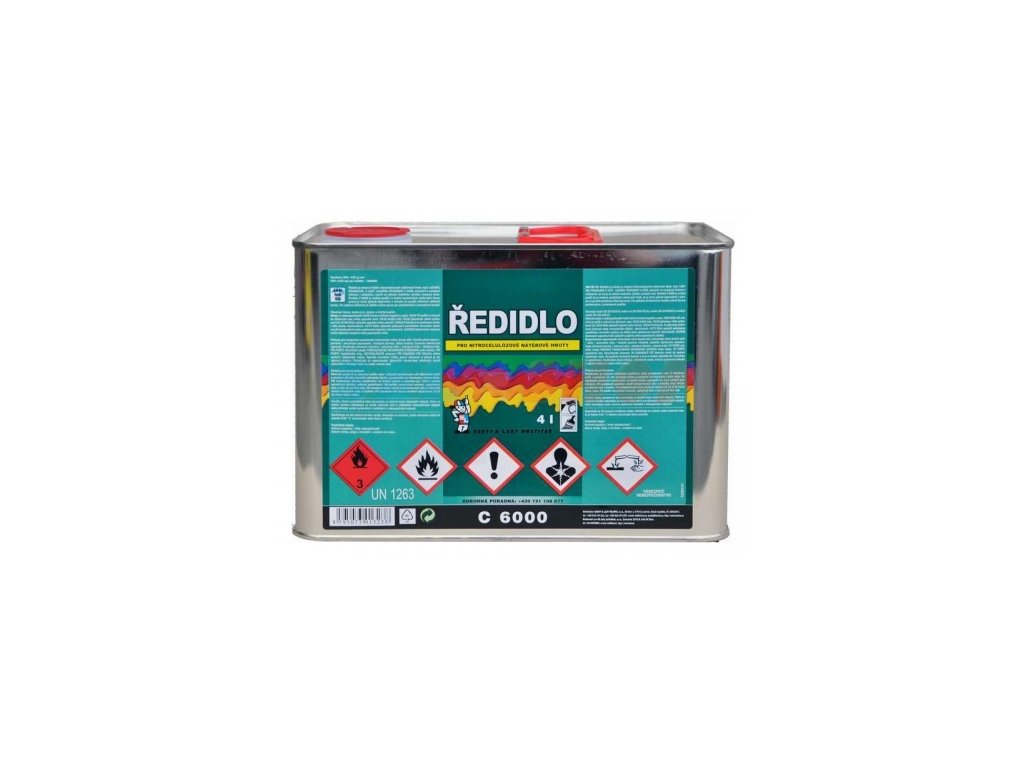 Riedidlo je určené na riedenie nitrocelulózových náterov určených na nanášanie štetcom a striekaním, pokiaľ nie je na etikete riedeného výrobku uvedené inak. Riedidlo C 6000 možno použiť aj na riedenie syntetických náterov, ak je tento spôsob odporúčaný v návode na použitie príslušného náteru. Riedidlo na striekanie je určené len na profesionálne a priemyselné použitie. Riedidlo možno použiť aj na odstránenie živicových výkvetov pri príprave nových drevených podkladov pred aplikáciou farby.- Označenie C6000, C 6000 alebo nitro riedidlo