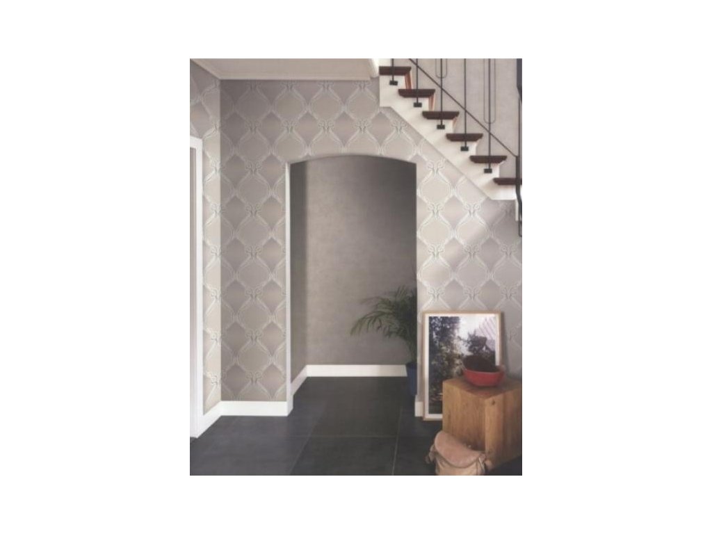 Vláknitá tapeta UP-04-01-1 s rozmermi 10,05x0,53 m s výrezom 64 cm. Vzor v béžových odtieňoch s bielymi obrysmi a jemnými striebornými trblietkami. Vláknité tapety sú novým typom tapiet a vďaka svojej jednoduchosti sú čoraz obľúbenejšie. Na výrobu vliesových tapiet sa používa jednostranne impregnovaný vláknitý nosný materiál. Pozostáva najmä z buničiny a textilných vlákien, ktoré sú spojené spojivom. Tým sa dosiahne maximálna rozmerová stabilita. Materiál sa vyznačuje aj vysokou priepustnosťou vzduchu a vodných pár. Ďalšou zvláštnosťou vliesových tapiet je, že lepidlo sa nanáša len na stenu (rovnomerne a nie príliš nahusto) a tapeta sa aplikuje za sucha. Vláknité tapety na rozdiel od papierových tapiet nevyžadujú čas na zvlhčenie. Lepenie vlnených tapiet Vliesové tapety sú vhodné na všetky podklady, steny, stropy atď., so všetkými typmi vnútorných omietok, sadrokartónových dosiek, betónových panelov, podkladových tapiet, drevotrieskových dosiek atď. Sú vhodné najmä na steny s trhlinami v podklade, stabilizujú tlak na citlivých podkladoch (mäkké vláknité dosky atď.). Výhodou vláknitých tapiet je ich dokonalá priedušnosť. Pozadie: Steny miestnosti dôkladne očistite a upravte prípadné nerovnosti, napr. vyrovnávacou hmotou. Odstráňte staré tapety a vodou rozpustné farby. Ak je podklad suchý a pevný, môžete pristúpiť k lepeniu. Čerstvá omietka, stierka, sadrokartónové dosky a všetky savé podklady by mali byť ošetrené základným náterom. Lepidlo na tapety môžete použiť na penetráciu podkladu podľa priloženého návodu. Vlhké podklady nie sú vhodné. Ak je podklad výrazne farebne alebo vzorovo odlišný, je lepšie ho natrieť základným náterom v odtieni tapety. Ak tapetu premaľujete, podklad môže mať inú farbu. Postup lepenia: Dĺžka pásu vliesovej tapety na stene = výška miestnosti + 5 cm rezerva v hornej a dolnej časti na prestrihnutie. V prípade vliesových tapiet so vzorom (vzor uvedený na obale je doplnený) sa rolka pripevní tak, aby vždy nadväzovala na začiatok vzoru. Vrchnú časť vliesovej tapety označte ceruzkou, aby sa pás tapety počas lepenia neprevrátil. Prilepte prvý pás od okna smerom k dverám. Pomocou olovnice si vopred vyznačte zvislú čiaru. Obklady na steny nalepte tesne vedľa seba, len v rohoch a problémových oblastiach ich môžete prekrývať. Pri lepení zásuviek a vypínačov vypnite elektrický prúd, pri lepení tapety odskrutkujte kryt, nalepte tapetu a potom ju vystrihnite. Pri lepení okenných výklenkov nechajte tapetu presahovať a potom ju presne odstrihnite. Pri radiátoroch stačí vytapetovať 10-15 cm. Stropy nalepte po dvojiciach. Lepidlo naneste na stenu alebo na tapetovaný podklad (podľa pokynov výrobcu) pomocou roztierača. Suché pásy narezanej vliesovej tapety zrolujte smerom dovnútra, vzniknutú rolku položte na stenu potiahnutú lepidlom, rozviňte tapetu a gumovým valčekom ju pritlačte k stene. Pomocou pravítka odrežte nožom okraje tapety, ktoré presahujú v spodnej časti. Ak je to možné, zvyšky lepidla okamžite odstráňte čistou handričkou. Ak chcete stenu samostatne a oddelene ozdobiť okrajom, pomocou ceruzky a pravítka si vyznačte miesto, kam ho chcete nalepiť na suchú tapetu. Chcete vypočítať počet roliek tapiet, ktoré potrebujete? Radi vám s tým pomôžeme, stačí nám napísať rozmery steny a označenie tapety na e-mail: info@upepanka.cz alebo nám zavolajte: 724 105 104Dodatočné parametre