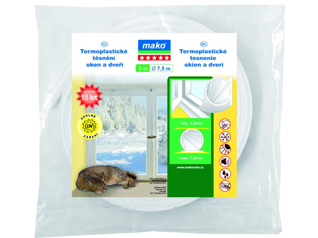 Termoplastické tesnenie (pásik) na utesnenie škár a medzier v oknách a dverách, pre škáry široké 1,5 až 7,5 mm. Životnosť až 15 rokov. Samolepiaci, šetrný k životnému prostrediu, neutrálny voči podzemnej vode, vysoko odolný voči UV žiareniu, poveternostným vplyvom a starnutiu. Tavné lepidlo. - Rozmer 6 m x 7,5 mm - Životnosť až 15 rokov! - Vysoko odolné voči UV žiareniu, poveternostným vplyvom a starnutiuDodatočné parametre