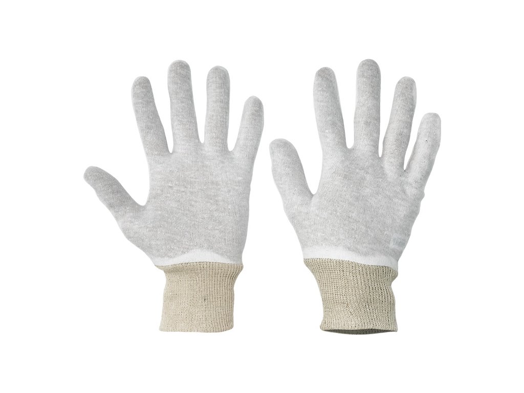 Rukavice s elastickou manžetou z jemného bieleného bavlneného/polyesterového úpletu. K dispozícii v niekoľkých veľkostiach.Dodatočné parametre