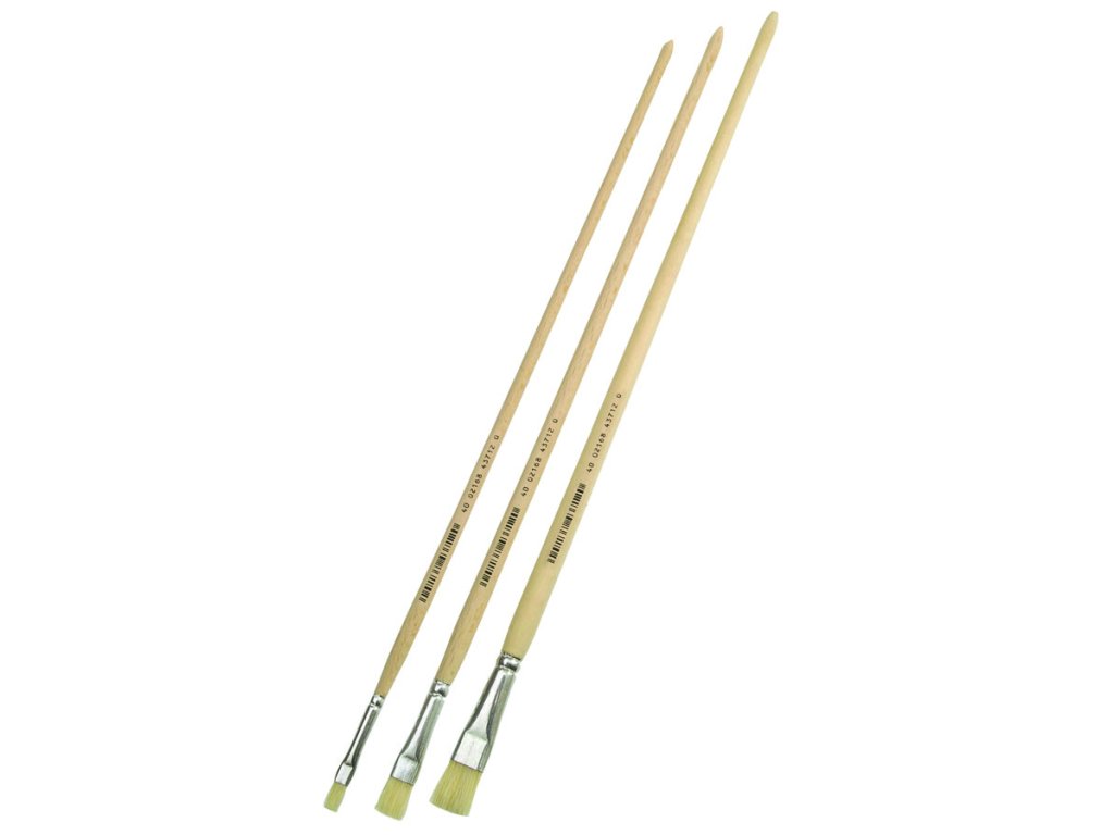 Plochá kefa Gussow - LYON XL , svetlé čínske štetiny, krátky, rovný strih, biela plechová rukoväť, dlhá nelakovaná drevená rukoväť