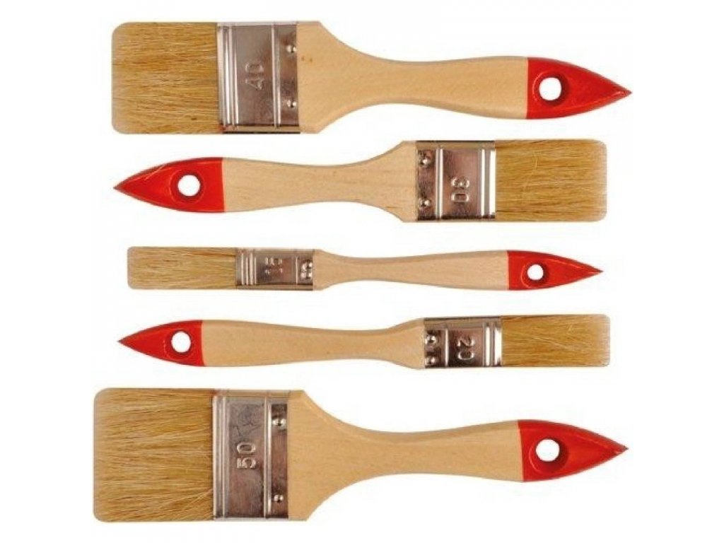 Súprava plochých štetcov s drevenou rukoväťou a prírodnými svetlými štetinami. Na univerzálne použitie. Veľkosť kefy: 50,40,30,20,15Dodatočné parametre
