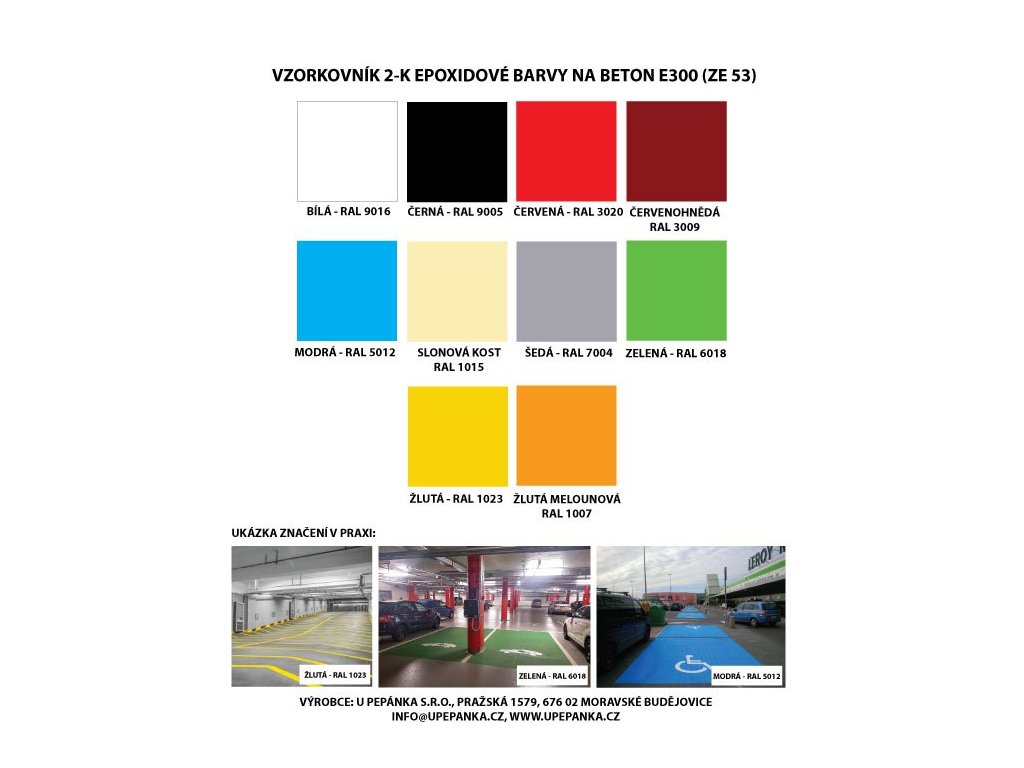 Vysokokvalitná rýchloschnúca samovytvrdzujúca dvojzložková epoxidová farba E300 do ťažkých korozívnych prostredí. Vhodný na mechanicky zaťažované podlahy v priemyselných halách, skladoch, dielňach a chodbách, kde sa pohybujú vysokozdvižné vozíky, vozidlá, paletové vozíky a dopravníky. Vhodné do ťažkých korozívnych prostredí. Odoláva nafte, benzínu, oleju, čistiacim prostriedkom, alkoholu a zriedeným kyselinám. Nanáša sa vysokotlakovým bezvzduchovým alebo vzduchovým striekaním, štetcom alebo valčekom. Na dosiahnutie hladkého povrchu alebo pri nanášaní štetcom/valčekom odporúčame nanášať 16 hodín po predchádzajúcej vrstve.- Dodáva sa v niekoľkých odtieňoch podľa aktuálnej ponuky, pozri vzorkovník