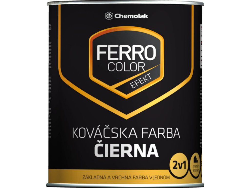 Použitie:FERRO COLOR Effect sa používa ako základná a vrchná antikorózna farba (2 v 1) na kovové povrchy (oceľ, železo, oxidovaný zinok). Záverečná vrstva skrášľuje a chráni podklad pred hrdzou. Povrch je matný s jemným kovovým nádychom, ktorý imituje kovové dielo.