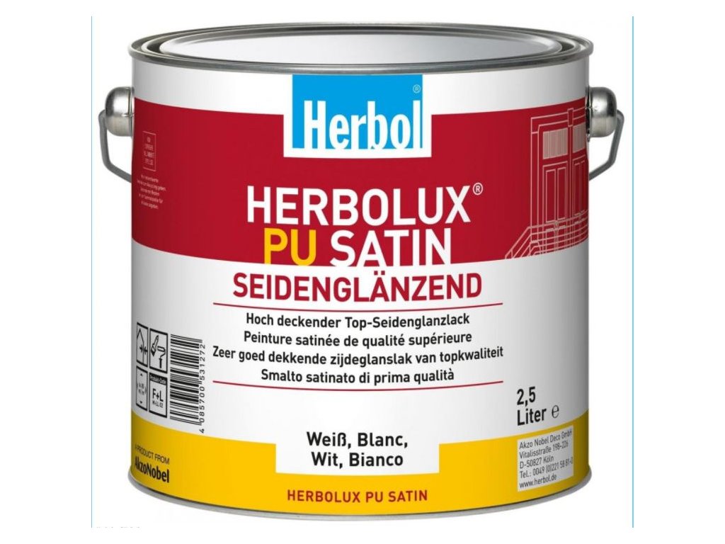 Vysokokvalitná farba bez arómy na báze uretán-alkydovej živice.Má vynikajúcu kryciu schopnosť a na renováciu dverí zvyčajne stačí jedna vrstva. Nanáša sa štetcom alebo valčekom na základné podklady, drevo, železné kovy a plasty (tvrdené PVC).Recenzie na Herbolux PU satén zo Španielskej sály Pražského hradu
